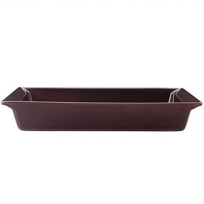 379602 Color: Figue Features: -Rectangular dish.-Material: High fired Burgundy clay.-Natural clay is unsurpassed for conducting and retaining heat.-Strong and durable ceramic bakeware and tableware for everyday use.-Extremely hard glaze - resistant to scratching.-Thermal properties: keeps hot, keeps cold - use directly from freezer to oven to table (0 F to 500 F).-Easy to clean by hand or in the dishwasher.-Shock resistant - highly resistant to chipping.-Guaranteed for 10 years against any defects.-Made in France. Dimensions: -2.5'' H x 10.5'' W x 15'' D.