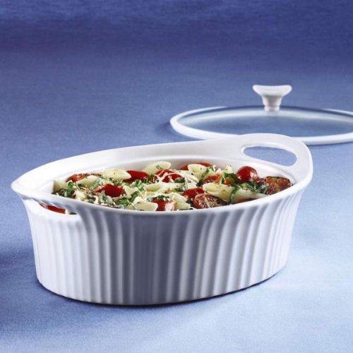 CORNINGWARE French White 1-1/2-qt Oval Casserole w/ Glass Cover Description