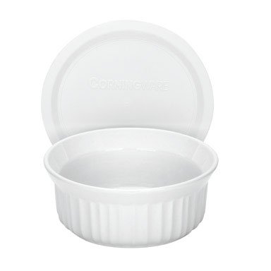 16 OZ, Pop Ins Round, French White, Casserole, With White Plastic Cover.