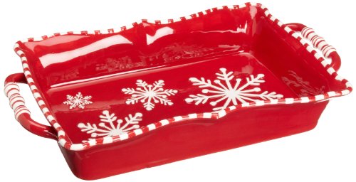 Falling Snow Baker is perfect for Holiday Casseroles. This red and white, hand painted, stoneware baker is great for home cooked meals or to take your favorite meal to your holiday party!Baker measures 11 x 14 x 3. Hand wash recommended.