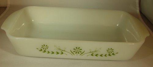 Glasbake Rectangular Casserole Baking Dish Handles Green Daisy Design Description