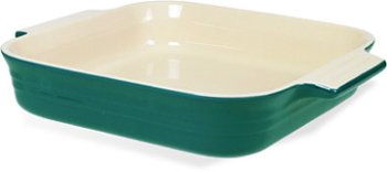 This 9-1/4-inch square baker, crafted from commercial-grade stoneware with Le Creuset's poterie glaze, cooks up a mean hot dish and looks good doing it. Coated inside and out with the company's signature enamel, the dish doesn't absorb moisture and resists chips, nicks, stains, and odors. It's oven-safe to 500 degrees F and can also go in the freezer, refrigerator, microwave, and dishwasher. It even looks good at the table. The easy-grip side handles--ridged above and lipped underneath--provide room enough for oven-mitt-sized fingers. --Emily Bedard