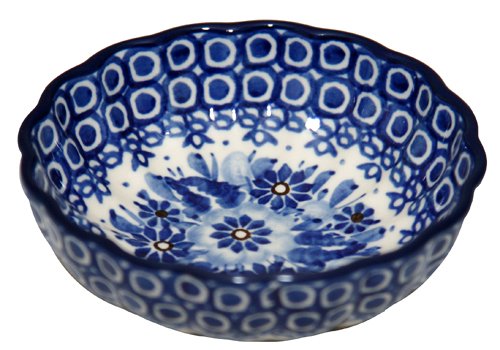 PERFECT SCALLOPED DISH Functional Art From Boleslawiec, Poland Collection: Unikat Size/Capacity: 4 1/2" x 1 1/2" (6oz)Shape #: 23 Pattern#: U1 Factory: Ceramika Artystyczna (CA) This factory produces the finest stoneware of all the factories in Poland and stamps each piece with their noted seal. Factory Authentication Sticker attached. Item Description : A Polish Pottery favorite named for its' size, shape, and limitless potential, you'll reach for this little scalloped bowl again and again. Often collected in sets of two, with various patterns around the table, this dish is a "must have." Also available in Traditional patterns. 100% Hand Painted, Variations To Be ExpectedPremium European Stoneware Certified Quality 1Imported Direct From Boleslawiec, Poland Dishwasher, Microwave, and Oven Safe to 450° Lead and Cadmium Free