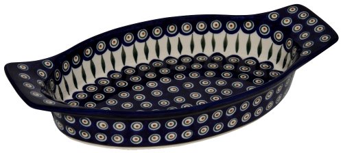 PREMIUM BAKER Functional Art From Boleslawiec, Poland Collection: Traditional Artist: Muzealna Size/Capacity: 17" x 8 3/4" x 2 3/4"Shape #: A34 Pattern#: 54 Factory: Ceramika Artystyczna (CA) This factory produces the finest stoneware of all the factories in Poland and stamps each piece with their noted seal. Factory Authentication Sticker attached. Item Description : Premium style and handling make this Polish Pottery baker the jewel of your collection, as it serves effortlessly from oven to table. 100% Hand Painted, Variations To Be ExpectedPremium European Stoneware Certified Quality 1Imported Direct From Boleslawiec, Poland Dishwasher, Microwave, and Oven Safe to 450° Lead and Cadmium Free