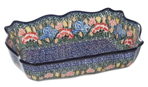 UNIKAT HOSTESS BAKER Functional Art From Boleslawiec, Poland Collection: UnikatArtist: Jolanta Okraska Size/Capacity: 11 1/2" x 7 1/2" x 2 3/4" Shape #: A51Pattern#: U4187 Factory: Ceramika Artystyczna (CA) This factory produces the finest stoneware of all the factories in Poland and stamps each piece with their noted seal. Factory Authentication Sticker attached. Item Description : A premiere selection, this ceramic baker goes from oven to table with pride. Between meals, you'll want to leave this beautiful centerpiece on display. 100% Hand Painted, Variations To Be ExpectedPremium European Stoneware Certified Quality 1Imported Direct From Boleslawiec, Poland Dishwasher, Microwave, and Oven Safe to 450° Lead and Cadmium Free