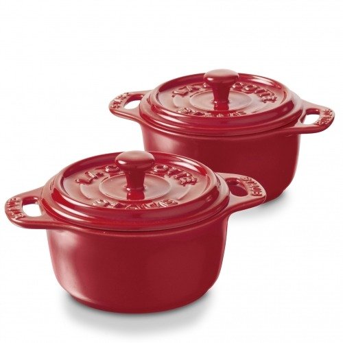Staub Ceramic 4 inch Mini Round Cocotte, Set of Two, Rouge Description