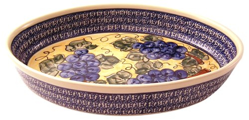 EuroQuest Imports Bunzlauer Polish Pottery Oval Baker in Grape Vine Pattern