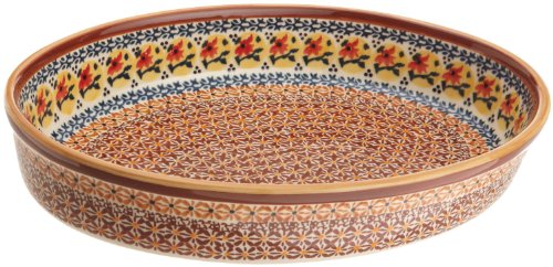 Euroquest Imports Bunzlauer Polish Pottery 2.5-Quart Oval Baker in Amber Sunrise Pattern Features